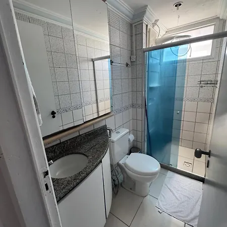 A highlight of Apto Todo Climatizado Perto Da Praia De Boa Viagem! apartment for guests is the presence of a dryer and bath sheets in the bathroom. A separate toilet and a shower can also be found.